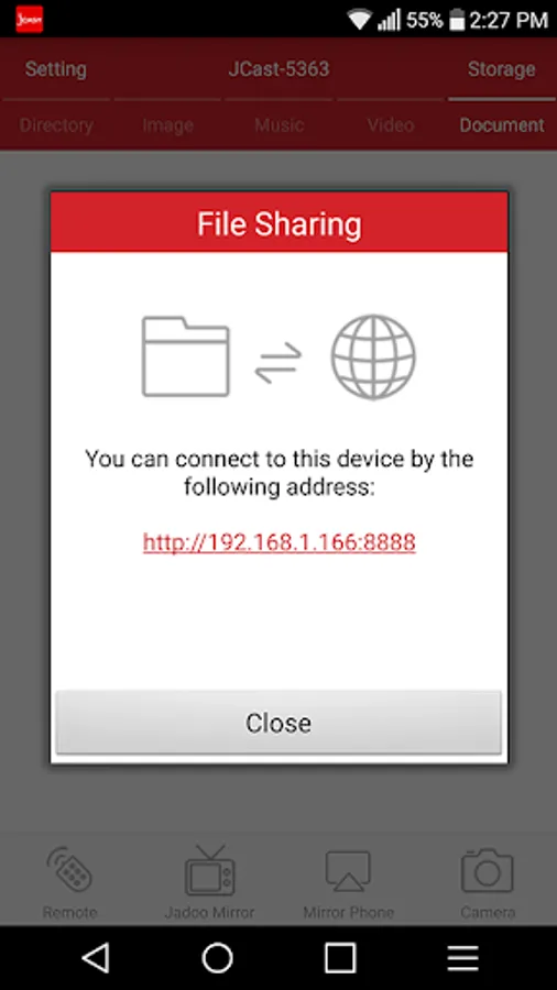 ● Stream any file (audio, video, photos, ms-office documents, txt, pdf, apk…etc ) from smart phone or tablet to Jadoo5 Box.