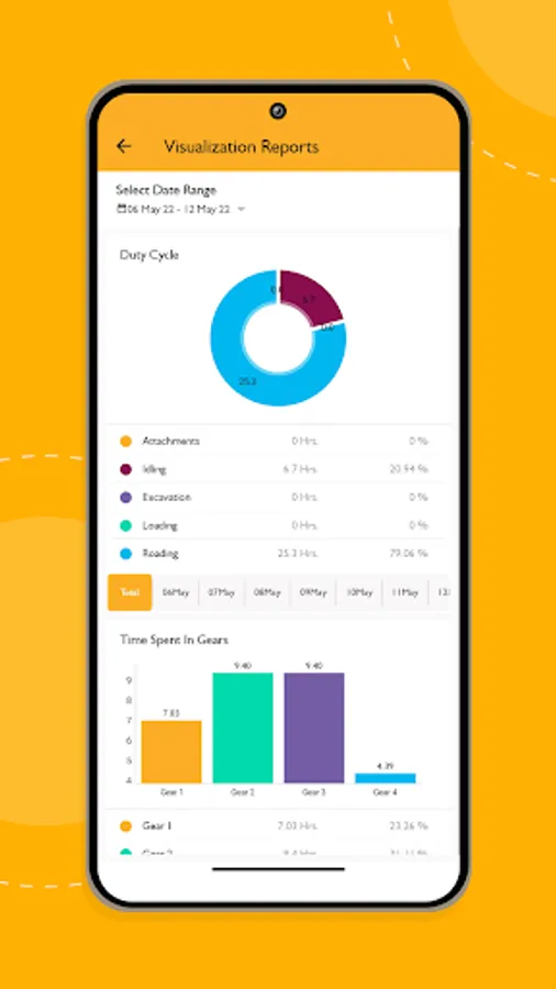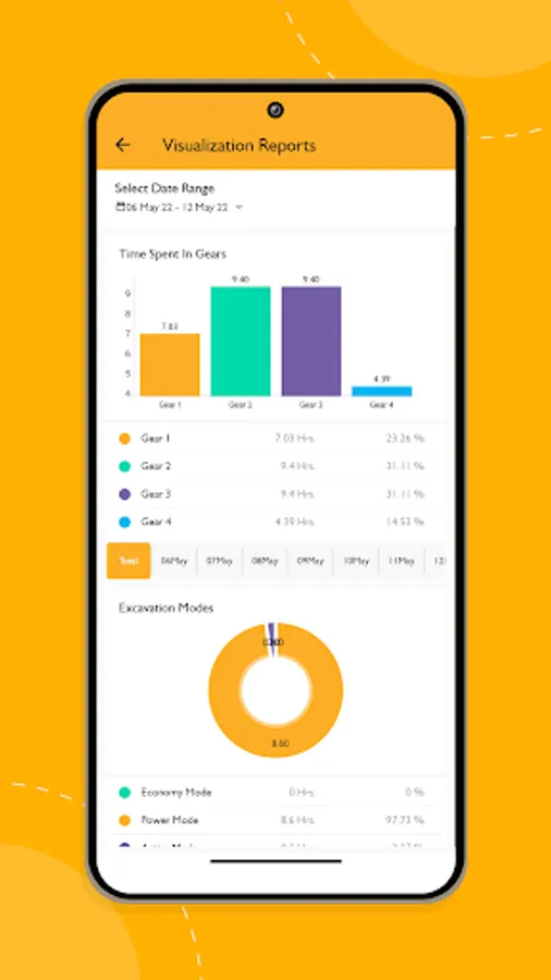 Detailed machine hours, faults and malpractice are recorded remotely, helping you process your machine faster for a quick turnaround. The system also allows you to view a performance report of your machine daily and can tell you how long it has spent excavating, loading or roading.