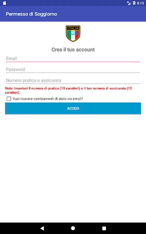 Application to consult the status of the residence permit application in Italy. Receive daily updates via email or push message on your mobile.