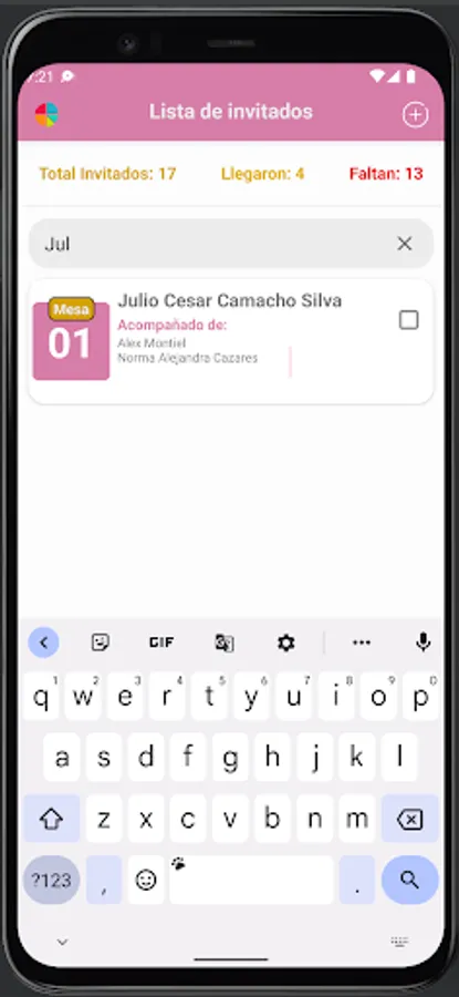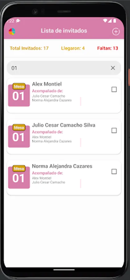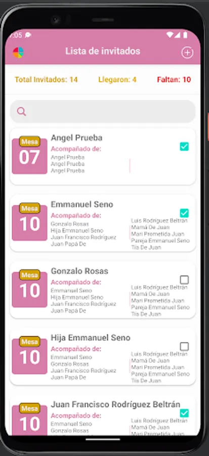Do you have a wedding? keep track of all your guests, you can keep track of your guests, select which table they will be seated at, you can filter the list to better find your guest and so they can direct them to their table, it will have the total number of guests as markers, how many have arrived and how many are missing, you just have to mark each time a guest arrives. You will be able to see this same marker on a graph.