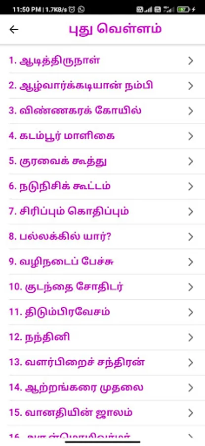 Ponniyin Selvan (பொன்னியின் செல்வன்) is a historical fiction novel by Kalki Krishnamurthy, written in Tamil. The novel was first serialized in the weekly editions of Kalki during the period and released in book form of five parts in 1955. it tells the story of the early days of Arulmozhivarman (அருள்மொழிவர்மன்), who later became the great Chola emperor Rajaraja Chola I. Kalki visited Sri Lanka three times to gather information for it