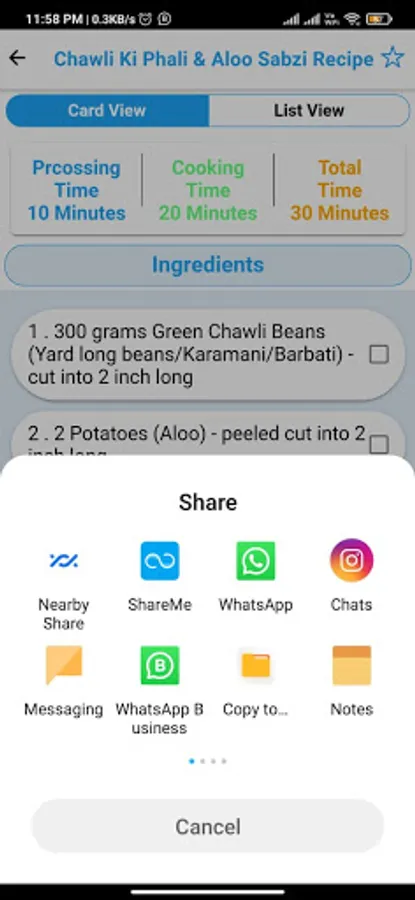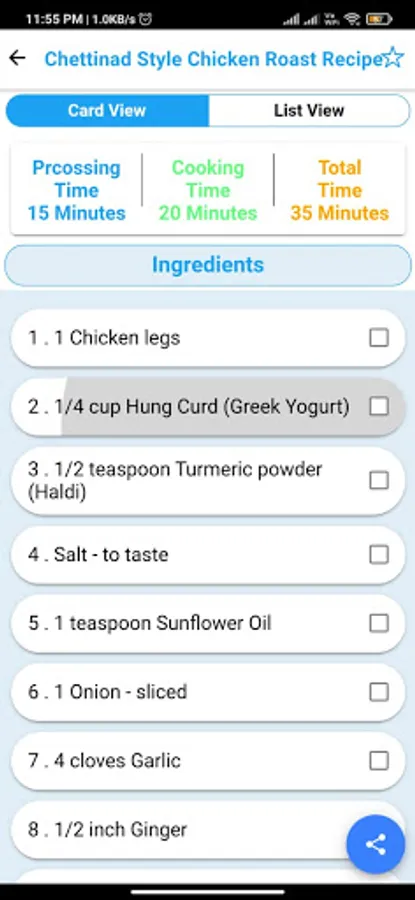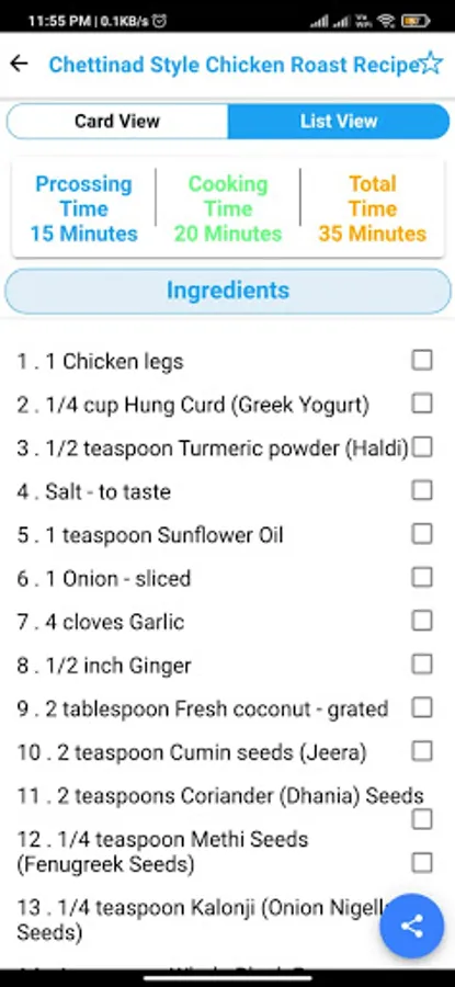 Ingredients, Instructions, Processing time, Cooking time Available with each item.