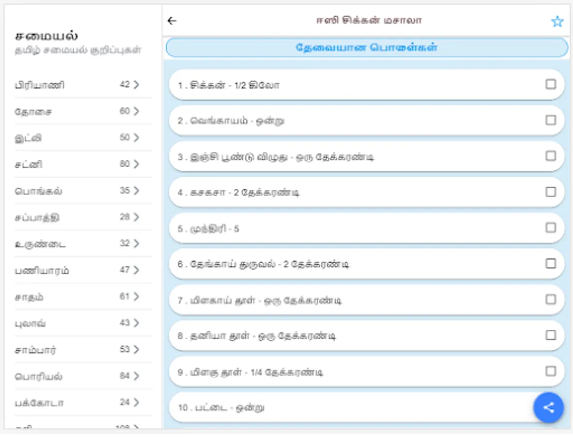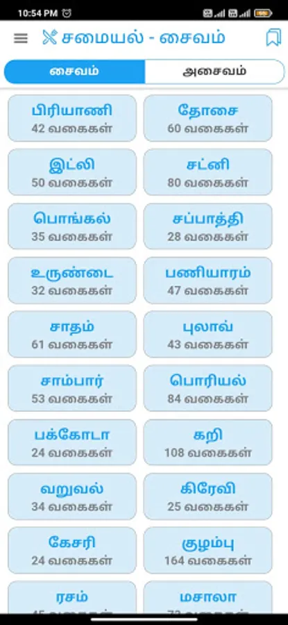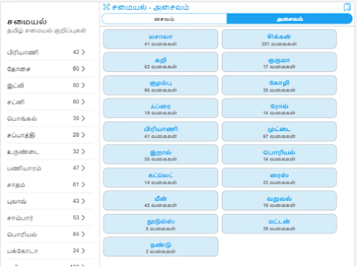 Arusuvai Samayal Tamil - A simple app with 2000+ Veg and 700+ Non-Veg recipes and description about ingredients and cooking process in tamil. All the recipes are categorized for easy use.