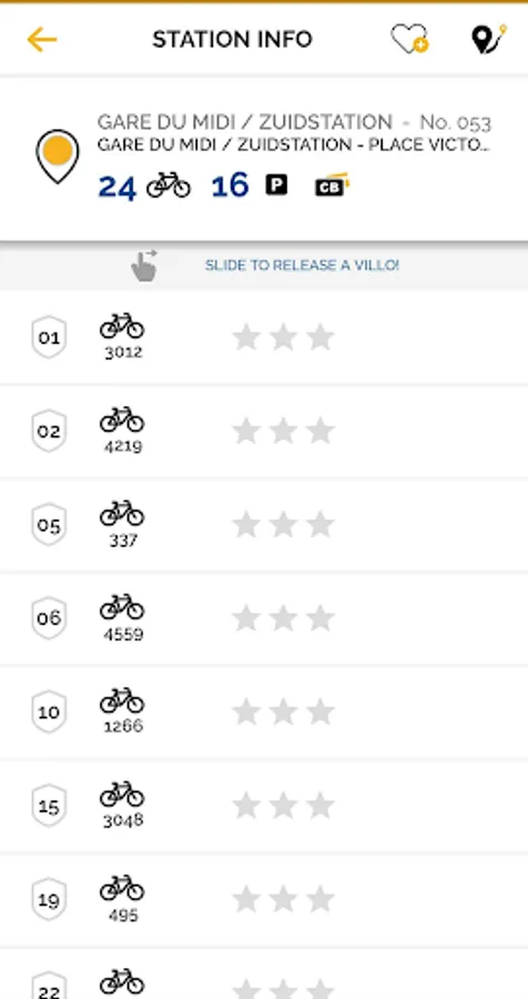 When you arrive close to the station, press “Unlock a Villo!” and choose your Villo! from the list of available bikes there.