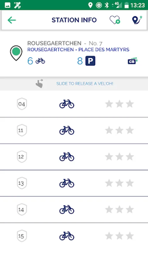 When you arrive close to the station, press “Unlock a vel’OH!” and choose your vel’OH! from the list of available bikes there.
