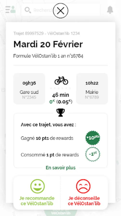 At the end of your trip you receive a notification on your mobile which confirm that your bike has been properly returned and ask you to share your experience with the VélOstan'lib users community!