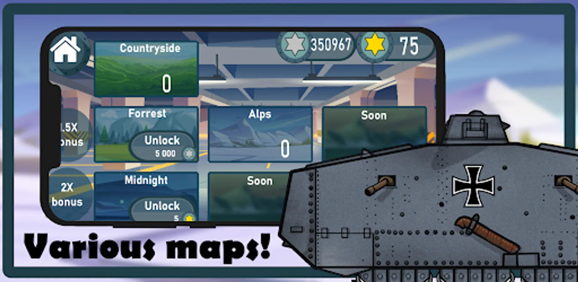 Take your tank and go into battle. Unlock new maps and discover new challenges!