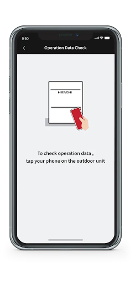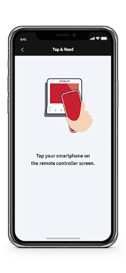 2. Bring your phone close to the NFC symbol on compatible Hitachi air conditioning equipment (2)(3). airCloud Tap will read and display the current settings on your phone screen.