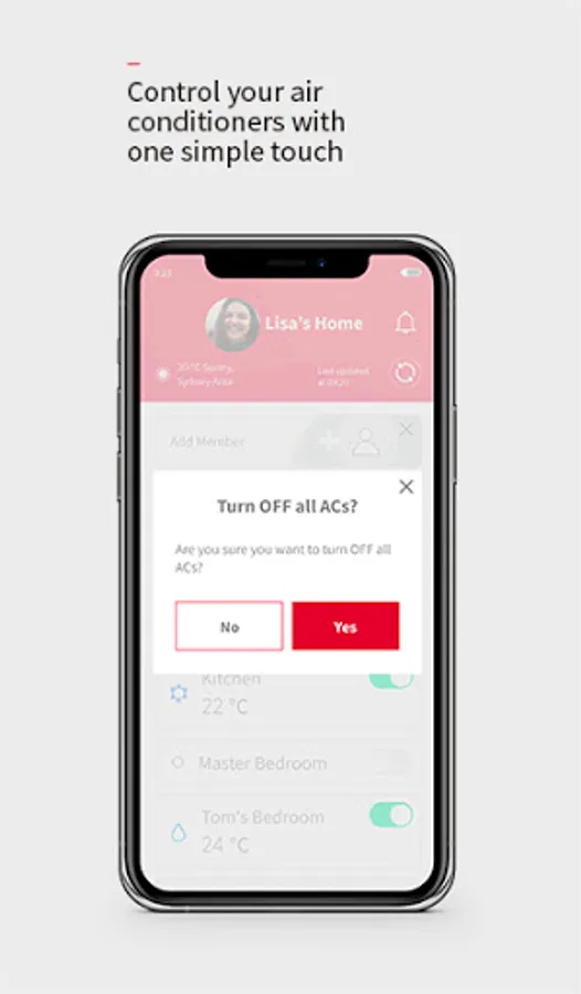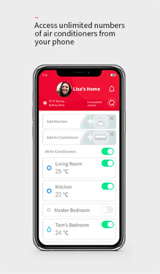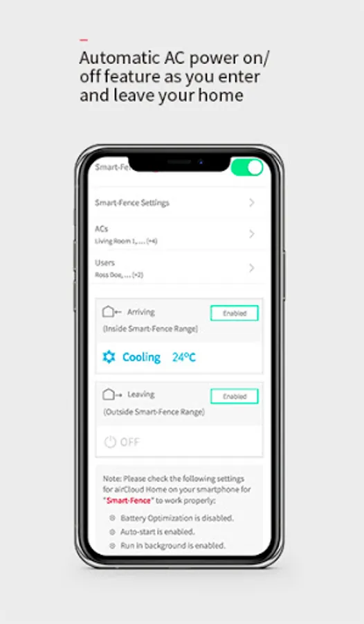 When a user is returning home and enters the pre-set perimeter, the air conditioner automatically turns on to create a welcoming atmosphere. When users exit the perimeter, air conditioners turn off or adopt an energy-efficient temperature.