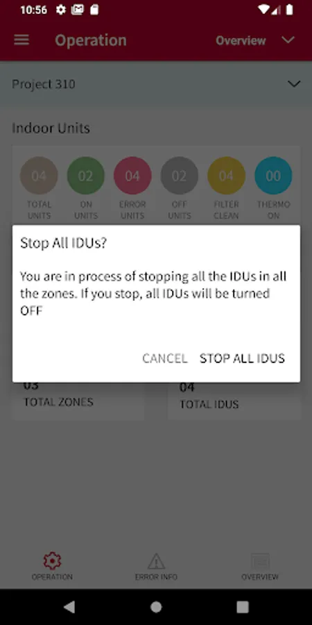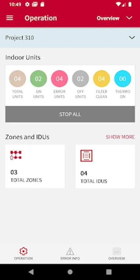 Turn off all indoor units of VRF systemTroubleshooting with error tracking and history display of indoor and outdoor units
