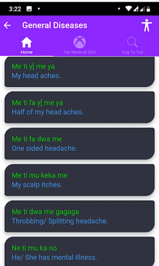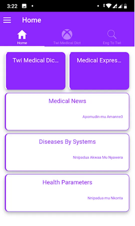 This app was built with the intention to help everyone to be able to have a reference for searching medical terms in the Akan Twi language for people interested in learning the Ghanaian language (Twi).
