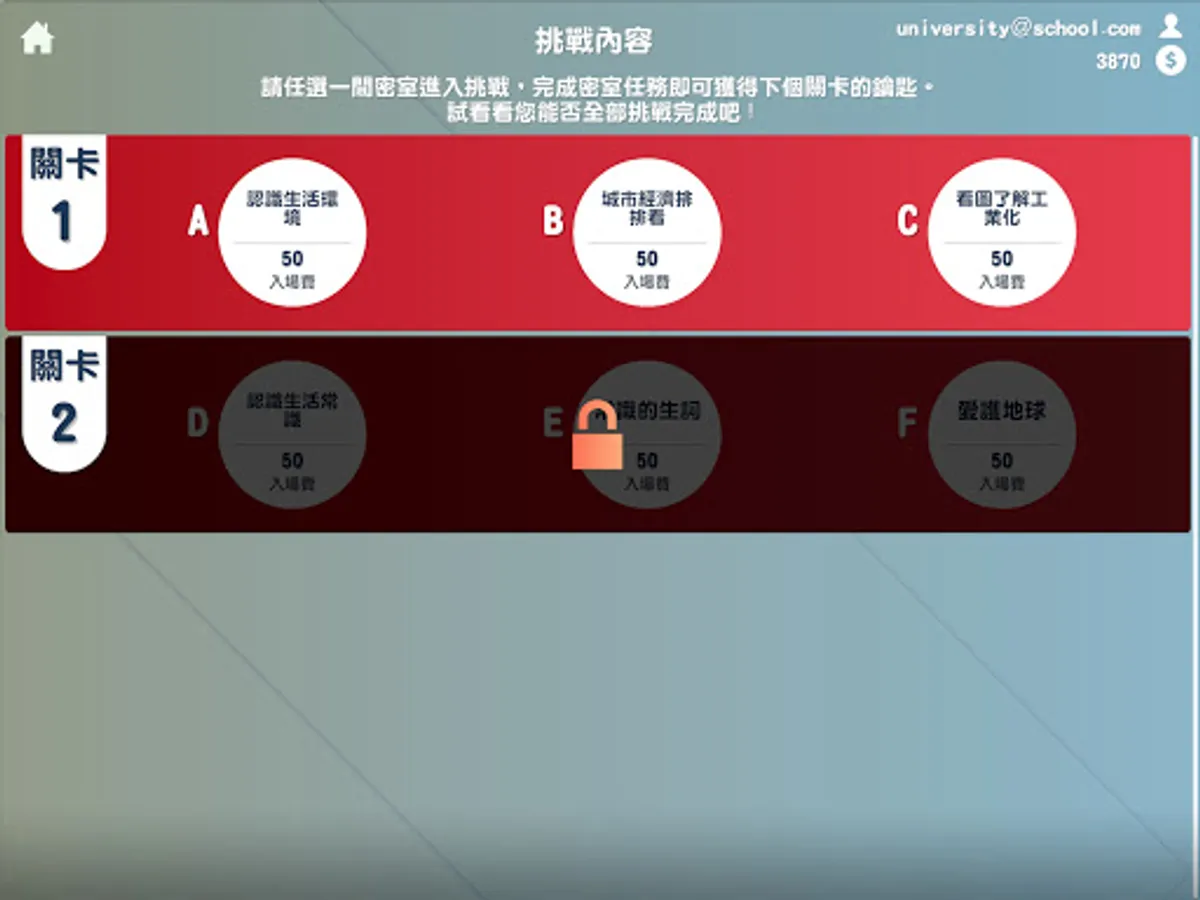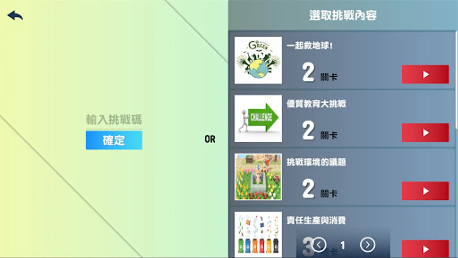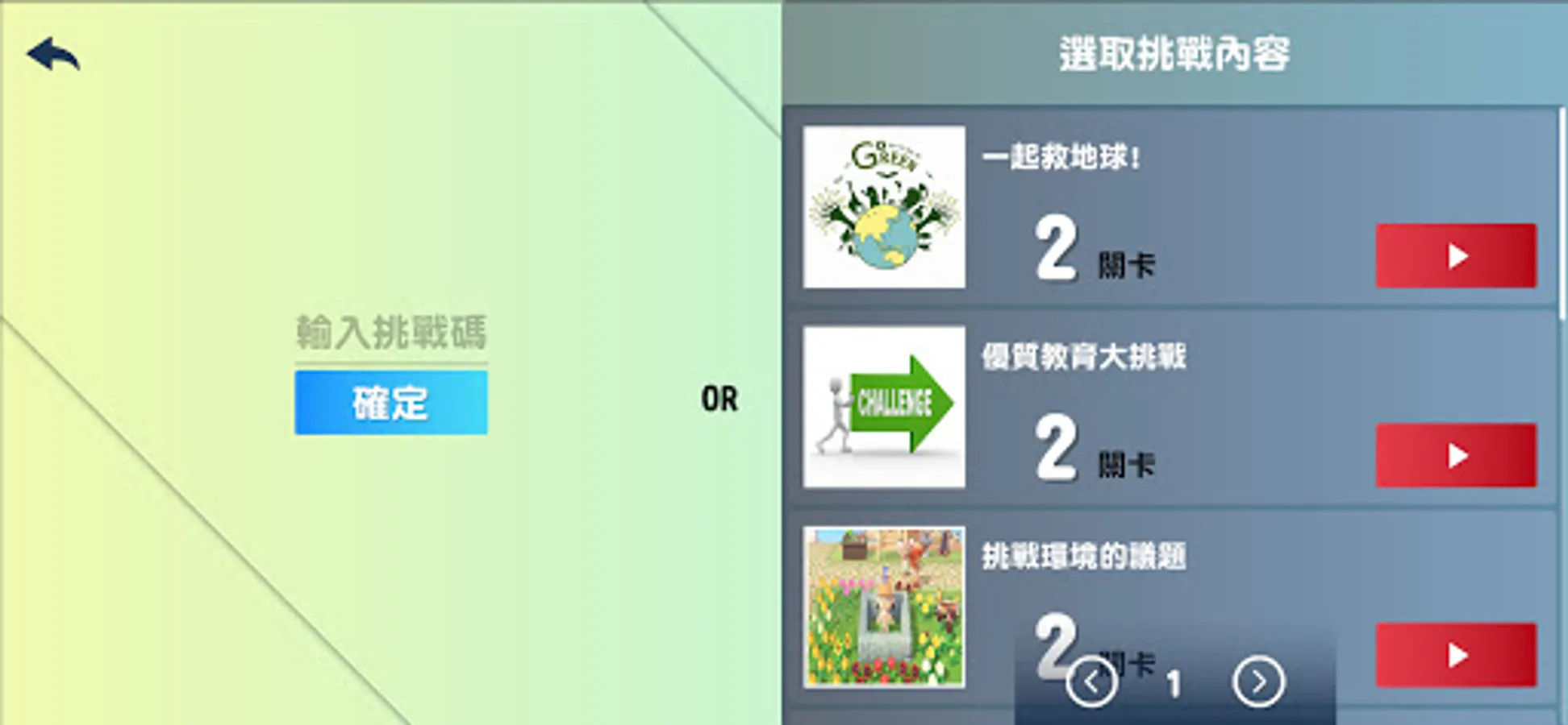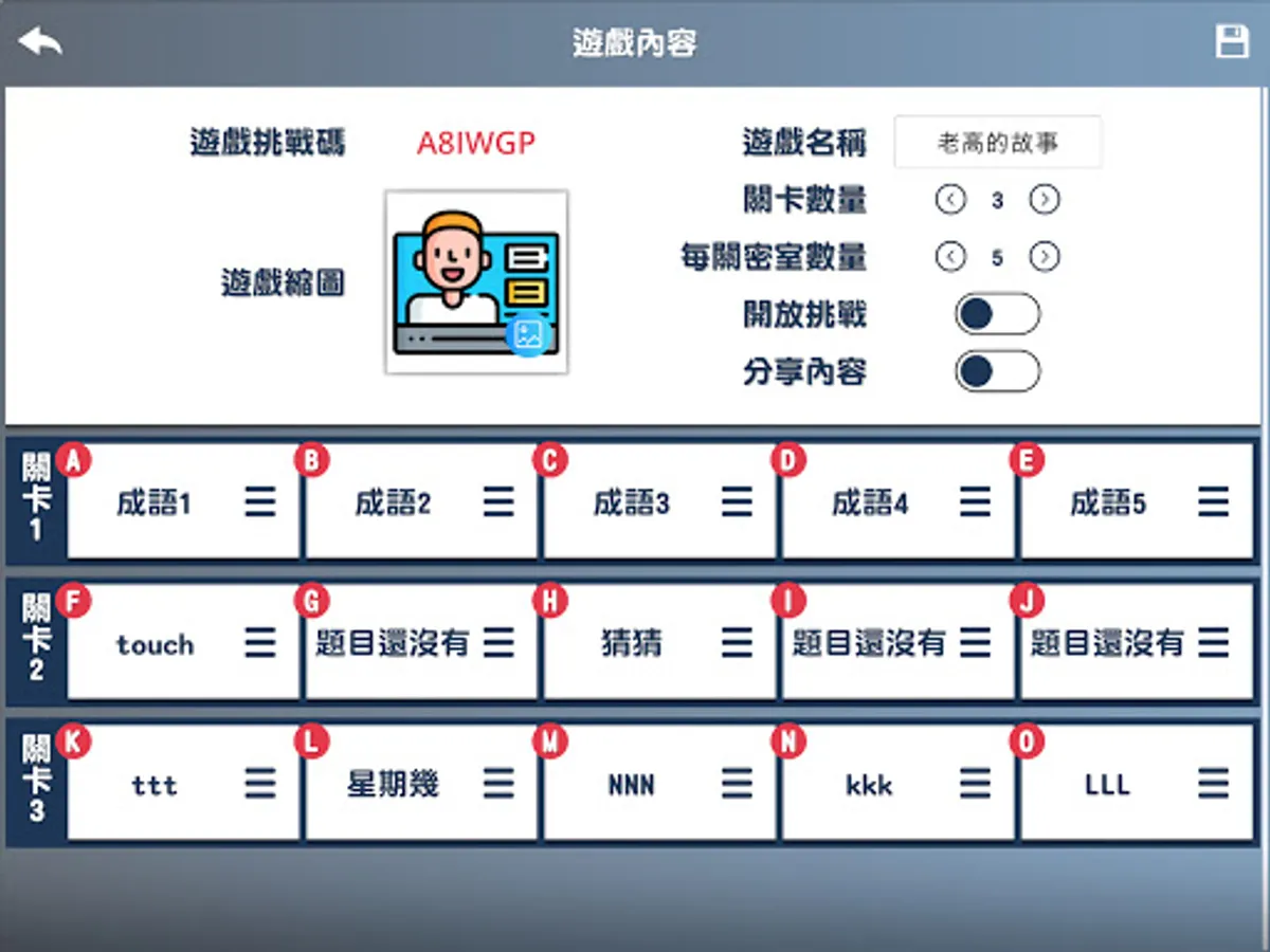 Smart Challenge is a game that combines puzzle-solving games to enhance the fun of learning. In the process of solving puzzles, improve the players' familiarity with knowledge and enhance the opportunity of application. According to different learning stages and corresponding learners, teachers can design levels by themselves and combine puzzle-solving to improve learners' fun in learning.