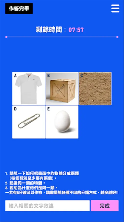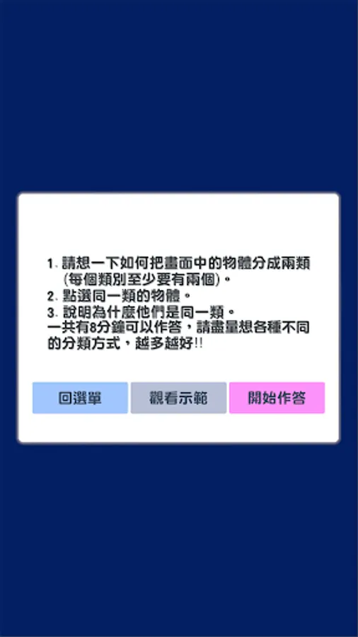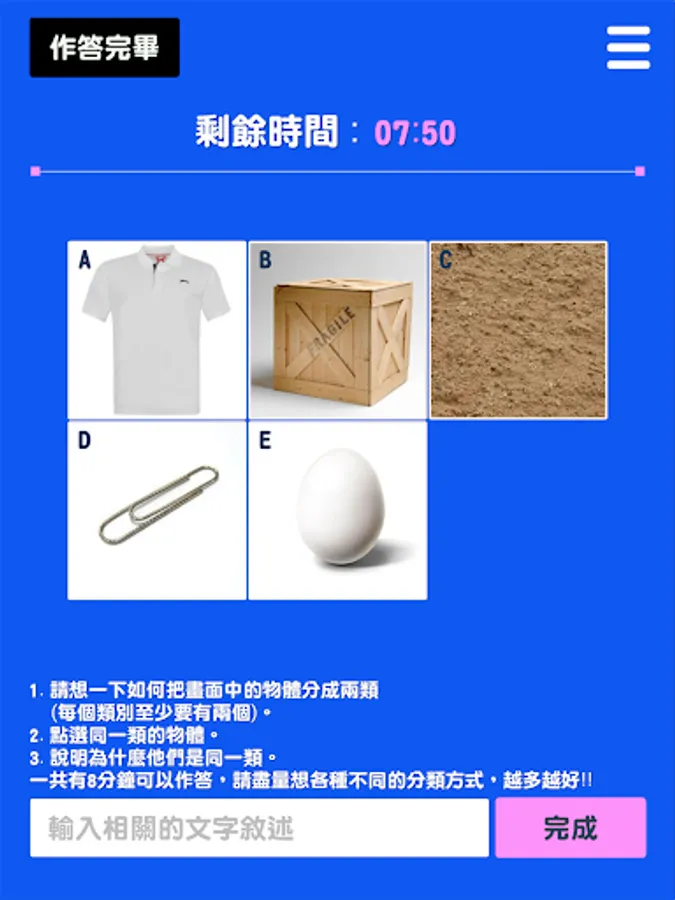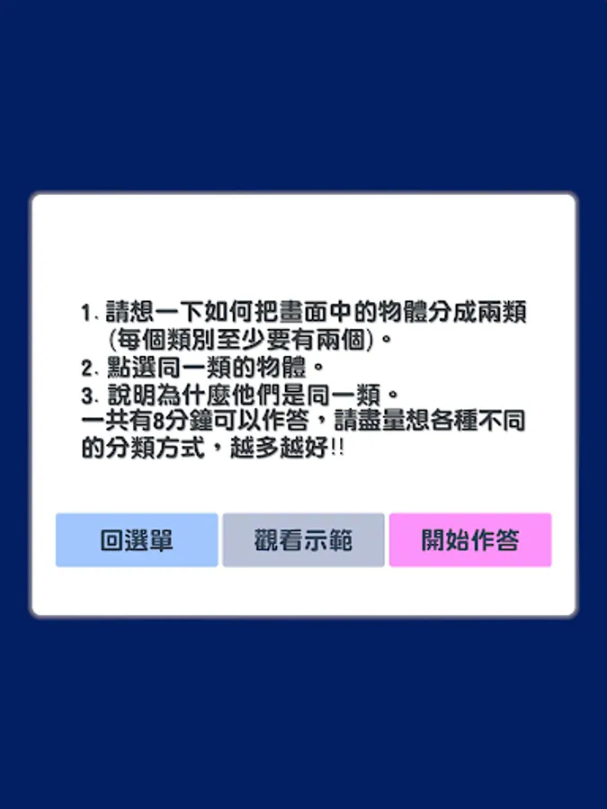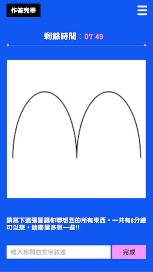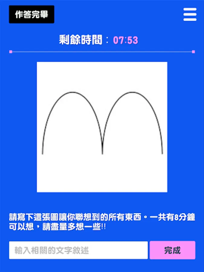 Assessing Creativity is an APP for creativity assessment, including four game contents: one-stroke game, attribute association game, sketch association game, and drawing expansion game. Users can answer in the image or text during the game process , you can also further analyze the performance of refined creativity or innovative thinking, and all answering data are also protected by user privacy. In addition, the platform automatically filters out indecent, violent and sexually suggestive responses.
