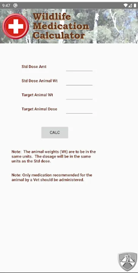 Wildlife medication often has a recommended dose based on an animals weight or per kilogram. In cases where the animal in care has a different weight to the standard weight specified on the medication the actual amount to be administered has to be calculated.