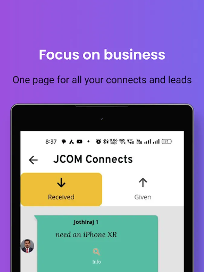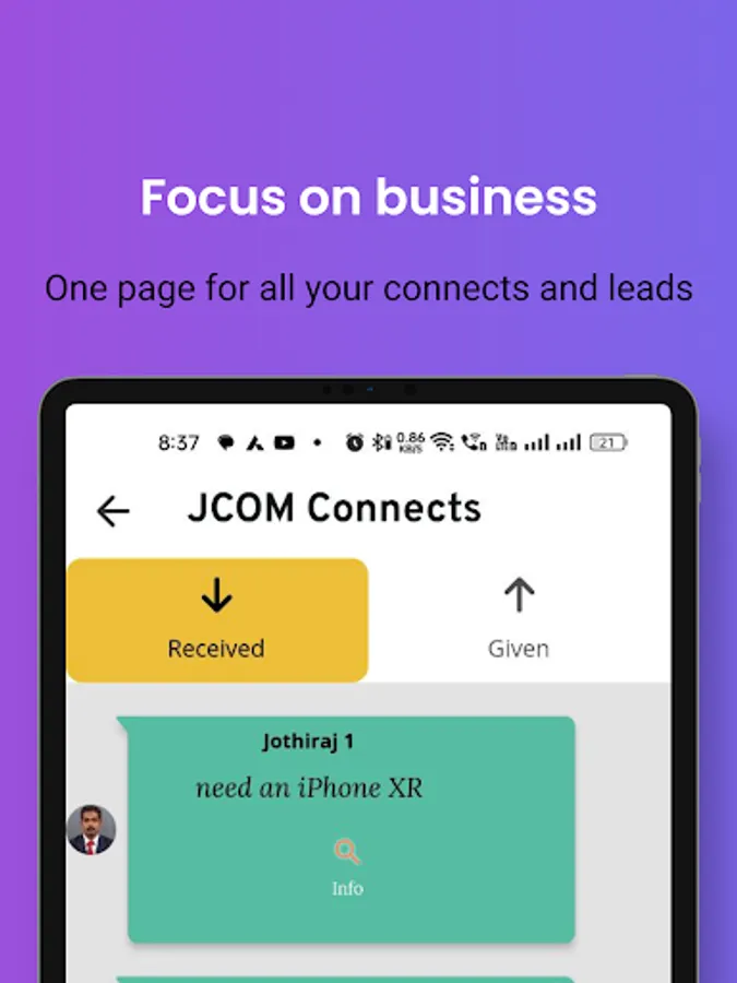 This app acts as a tool to connect the partners of JCOM from all across India.