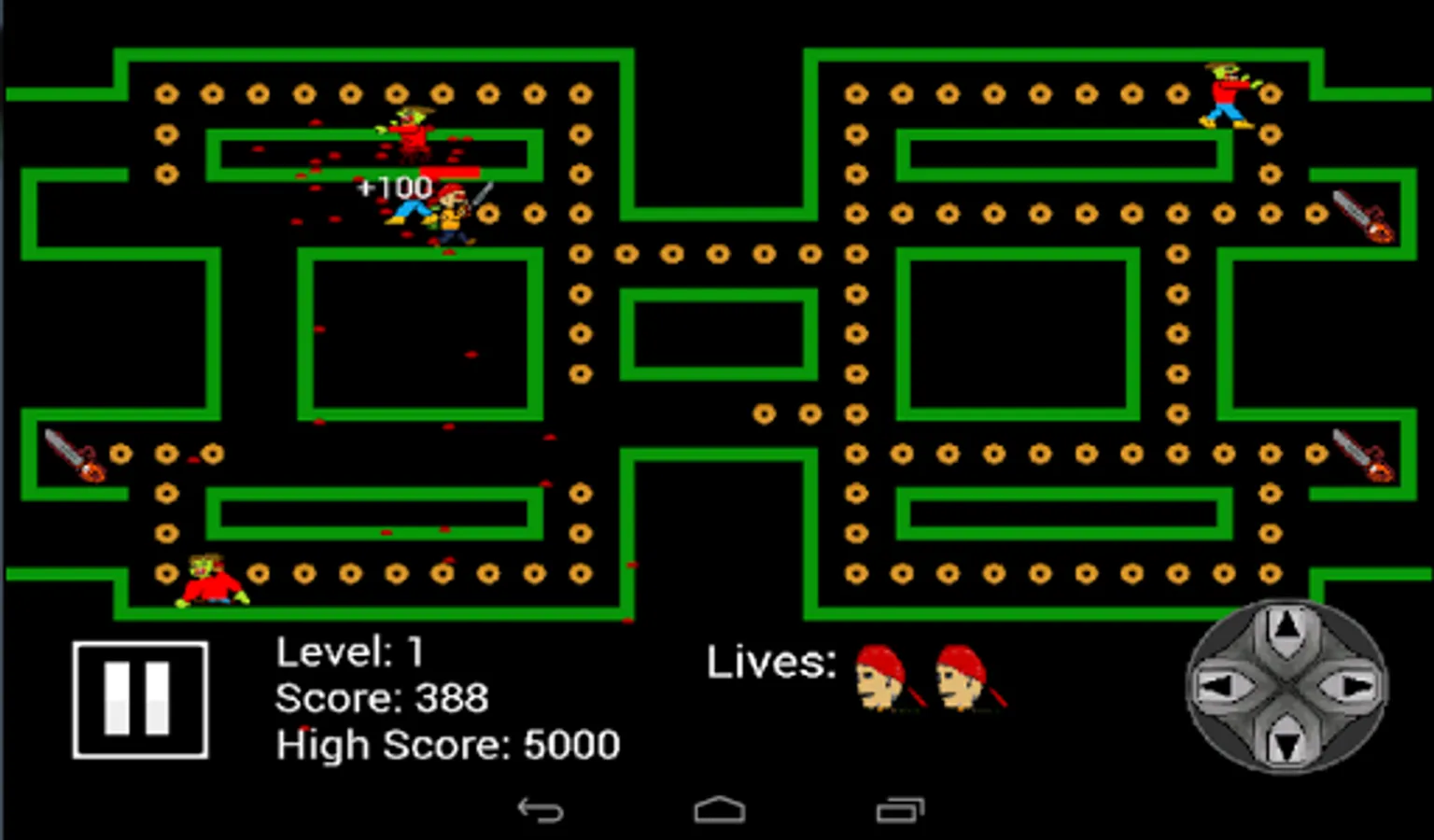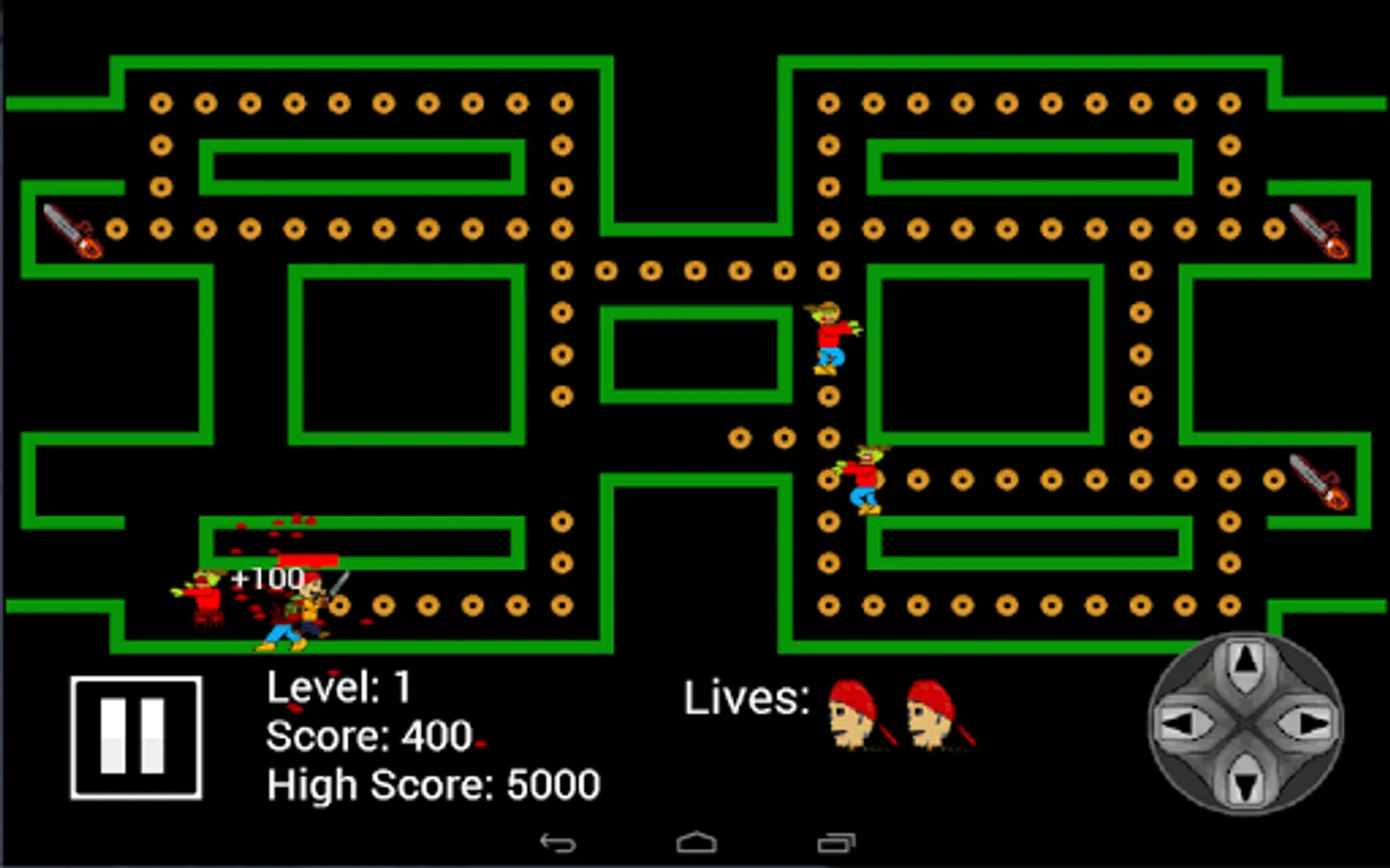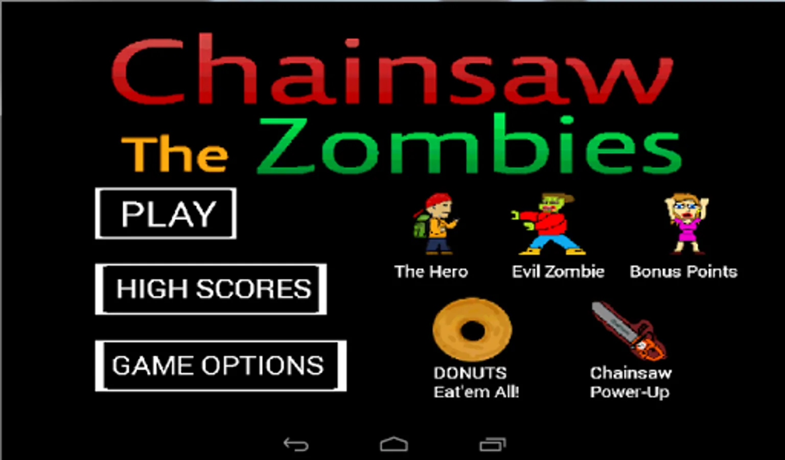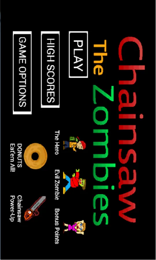 Chainsaw The Zombies is an indie video game made in the classic 1980s arcade style. Eat all the donuts to win the level. Use the chainsaws and carve your path through the zombies. Save the damsel in distress for bonus points.