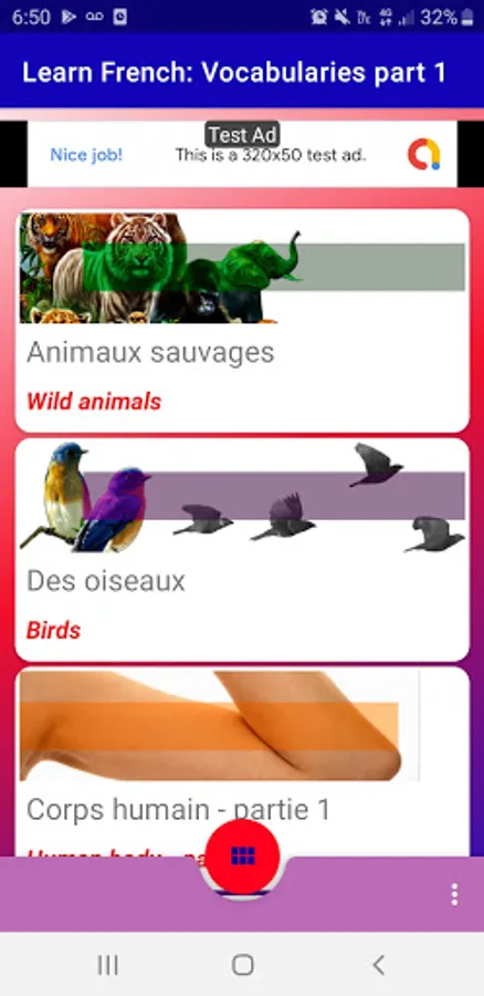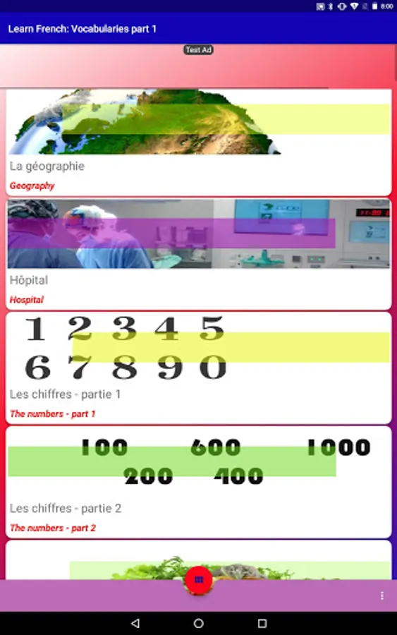 With this application of "Learn French: words and vocabulary - part 1", you can learn more than 300 words in french.