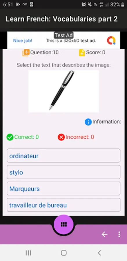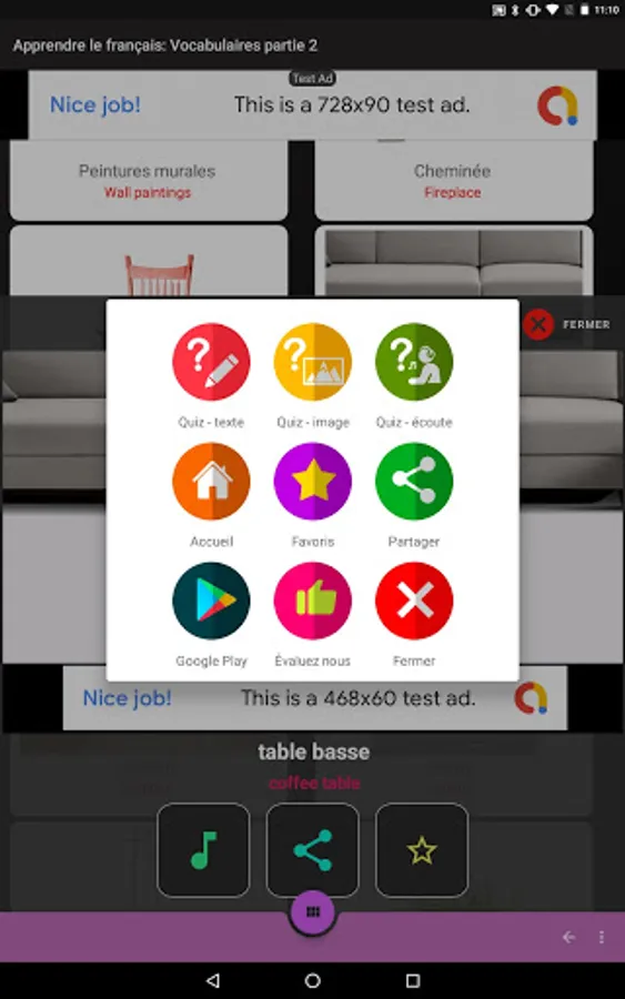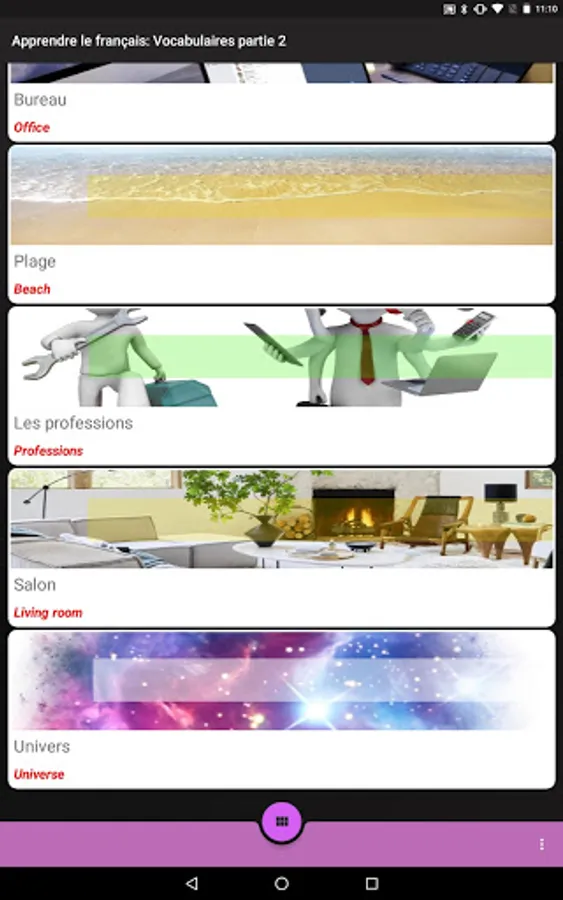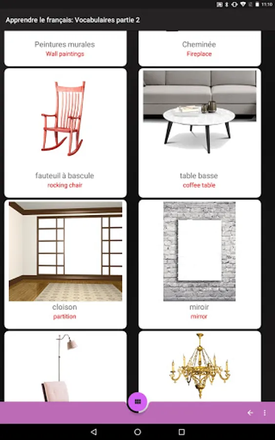 With this application of "Learn French: words and vocabulary - part 2", you can learn more than 300 words in french.