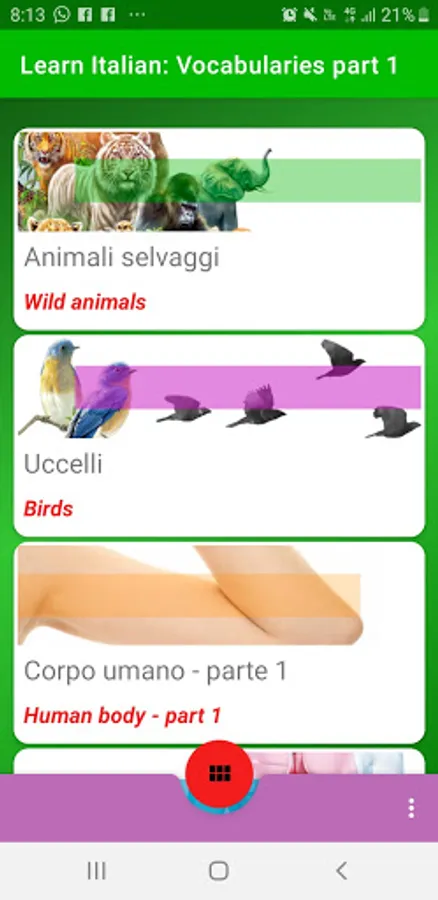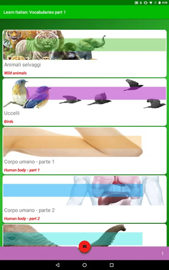 With this application of "Learn Italian: words and vocabulary - part 1", you can learn more than 300 words in italian