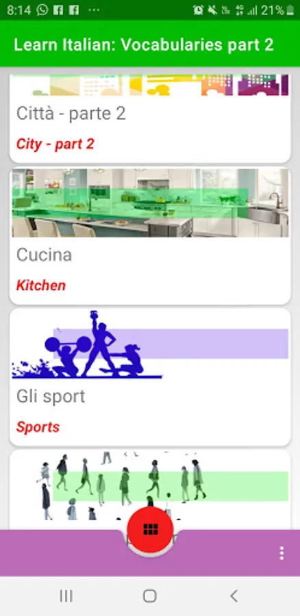 With this application of "Learn Italian: words and vocabulary - part 2", you can learn more than 300 words in italian