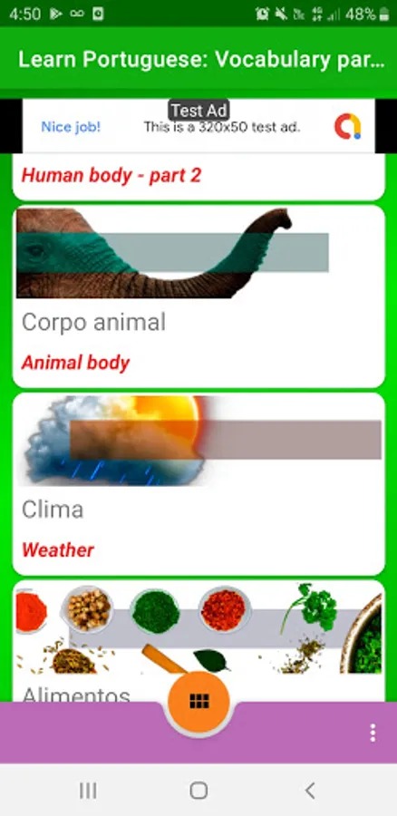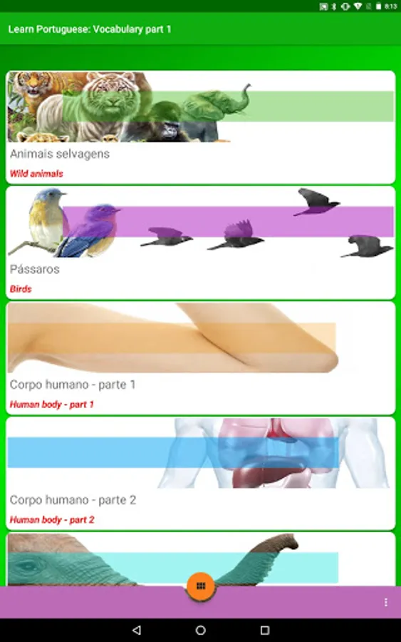 With this application of "Learn Portuguese: words and vocabulary - part 1", you can learn more than 300 words in portuguese