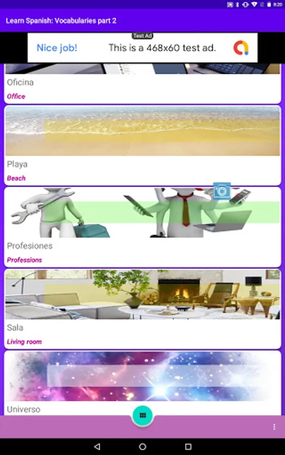 With this application of "Learn words and vocabulary in Spanish part 2", you can learn more than 300 words in the Spanish language.