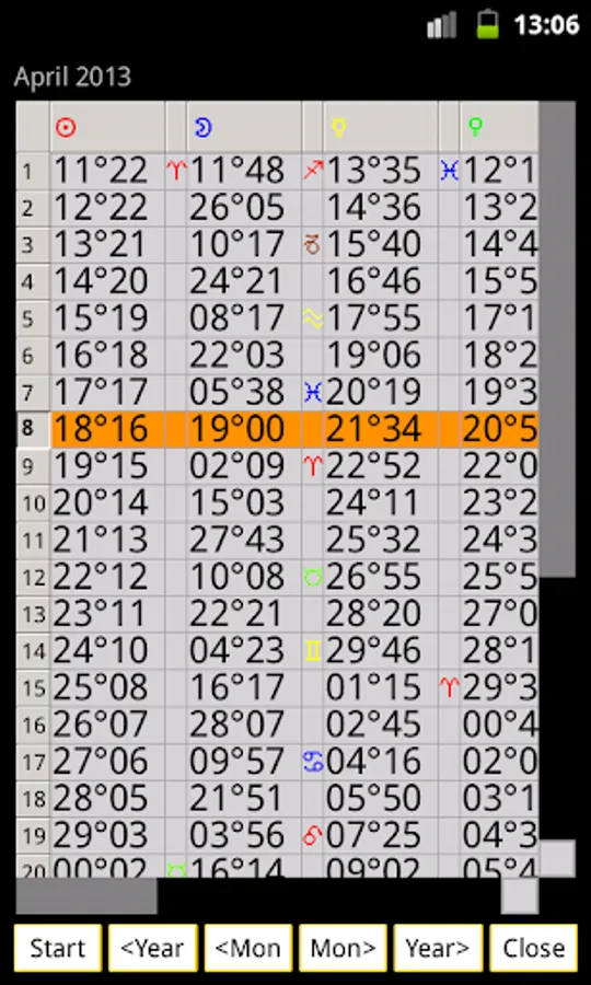 - Daily ephemeris for all planets, go forward/backward per month or year.