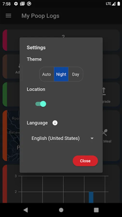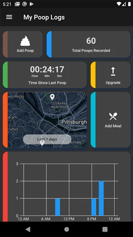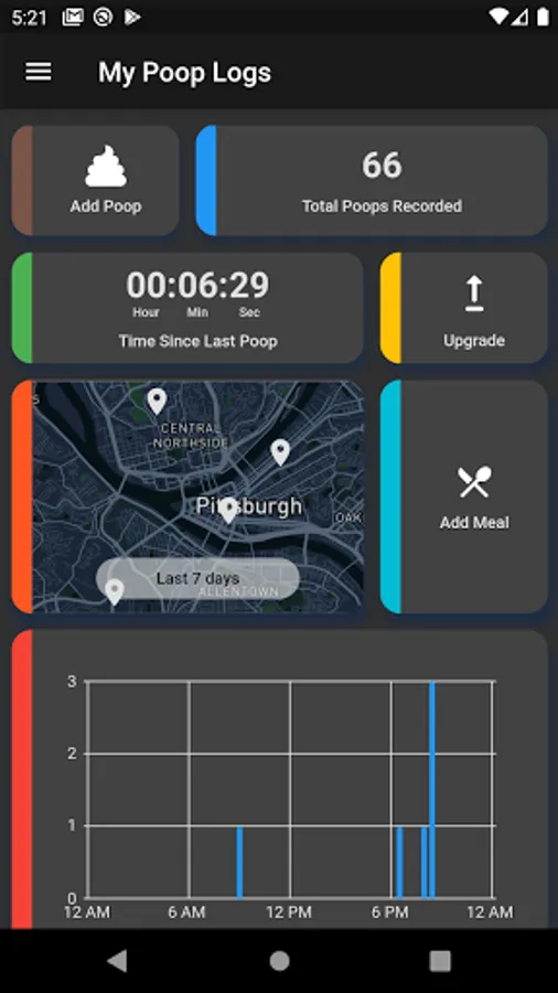 - View and filter the places you’ve pooped for all of your recorded poops on a map