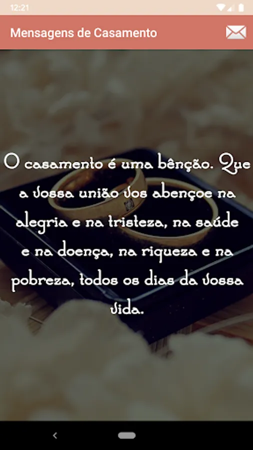 Is it time to write congratulations to the newlyweds and lack the ideas on what to write? In this app has dozens of messages to help you in this task!