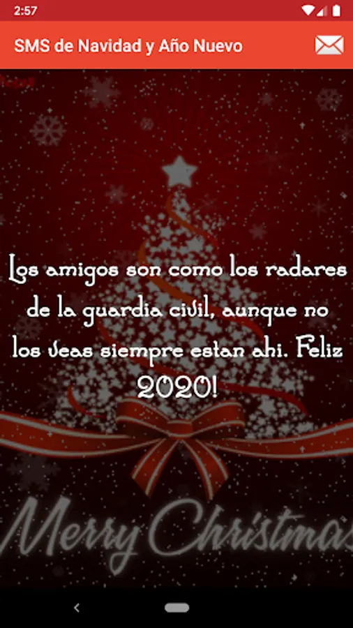The application offers the best messages of Christmas and New Year. Share the emails through text message, posting on your Facebook, etc