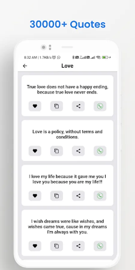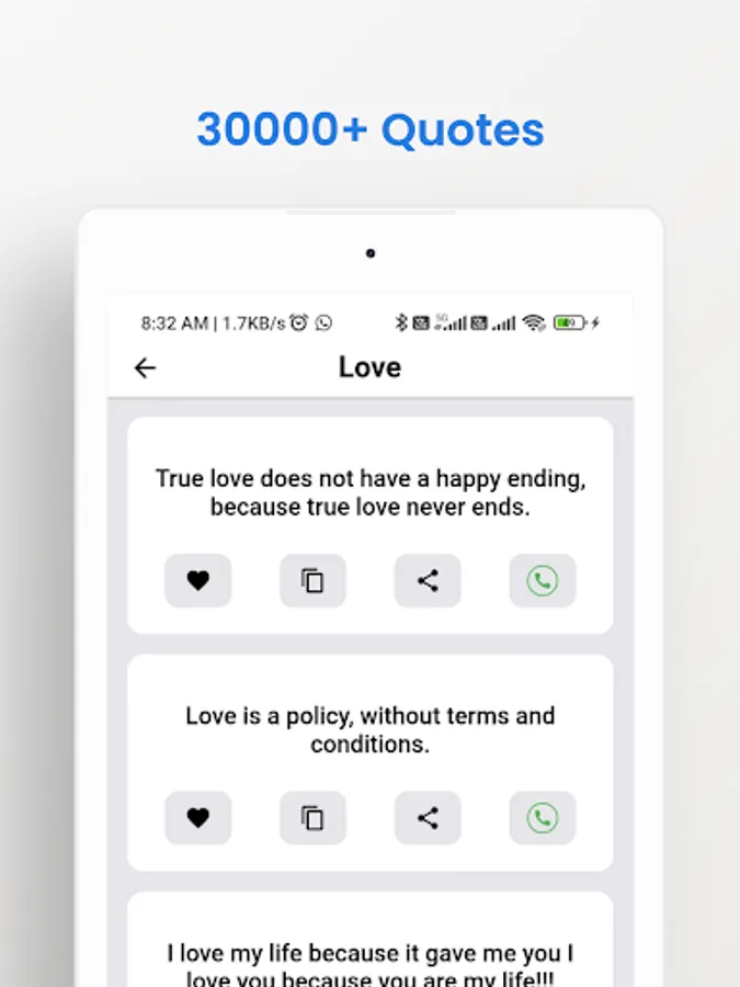 Best Quotes and Status is an app that provides an extensive collection of quotes for different categories. There are more than 50000 quotes and more than 300 categories.