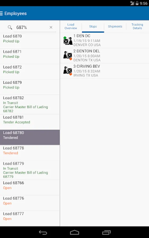 JDA TMU Classic can be utilized by carrier and employee based transportation personas. Carriers can review and respond to load tender requests. In addition, the solution allows real time stop based updates to be generated, including ETAs and stop confirmations, providing enhanced visibility to the operational progression of the associated load. Internal transportation based personas can retrieve loads and analyze associated events, stops and shipment details within the mobile application.