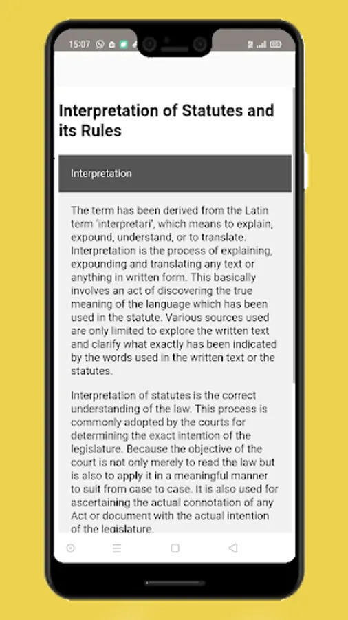 Statutory interpretation is the process by which courts interpret and apply legislation. Some amount of interpretation is often necessary when a case involves a statute. Sometimes the words of a statute have a plain and a straightforward meaning