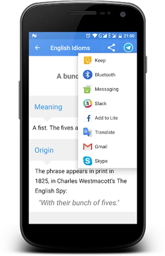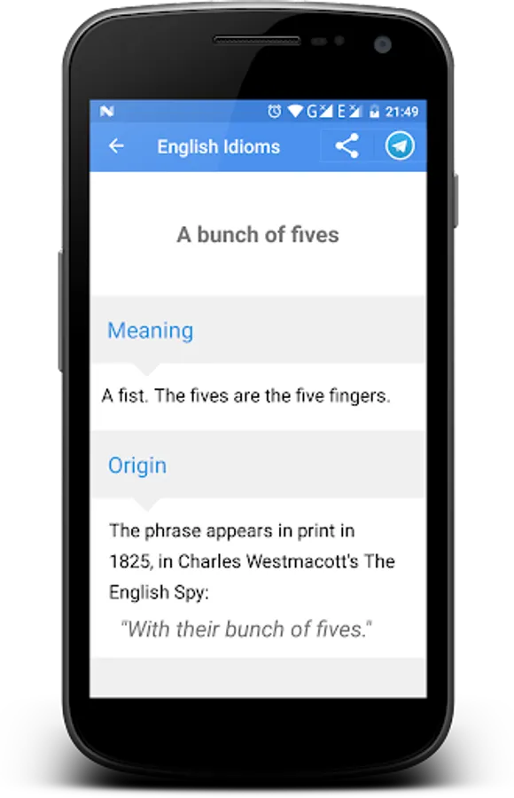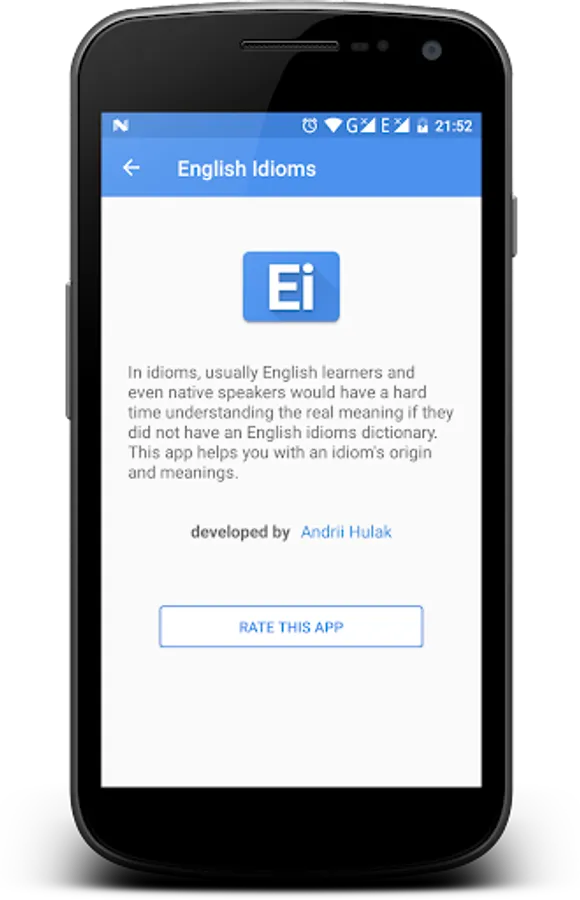 Language learners, as well as native speakers, might have hard time understanding and using idioms. This app will help you with origins and meanings of most often used idioms.