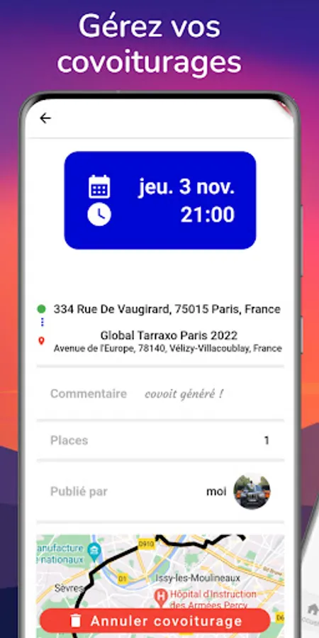• Choose your carpoolers: discuss and agree on the terms of carpooling to travel with confidence.