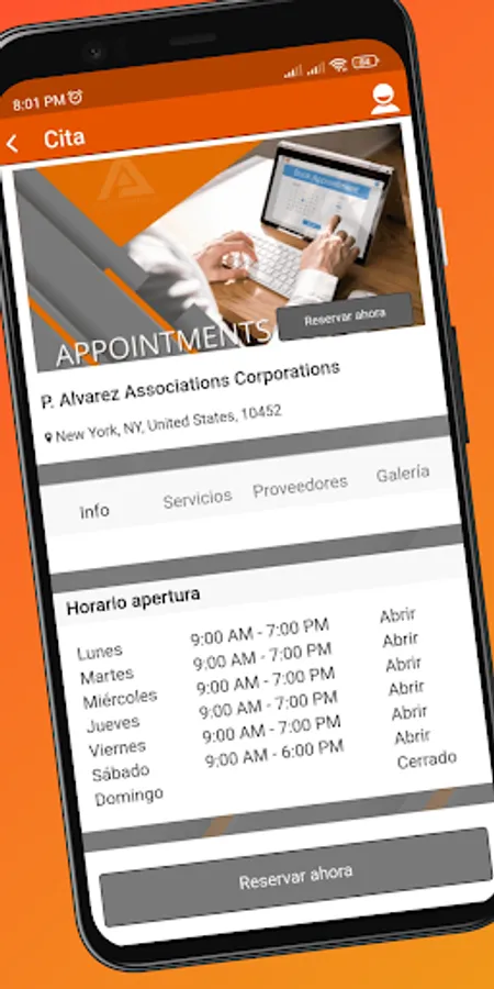 • Info: You can see information about our office; description of the practice, locations, website and more.