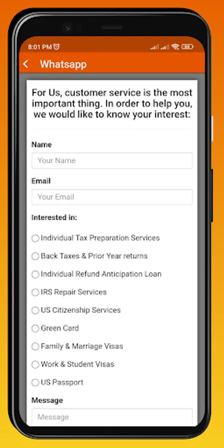 • One-tap help –(WhatsApp) You can have direct communication with our office selecting topics of interest.