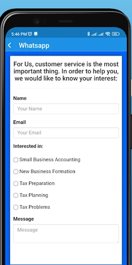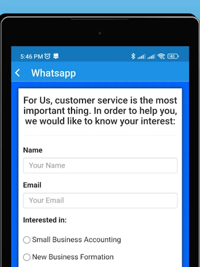 • One-tap help –(WhatsApp) You can have direct communication with our office selecting topics of interest.