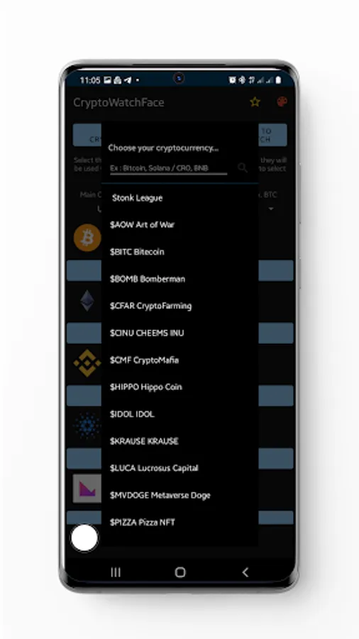It supports all the main cryptocurrencies, you will see this list through the mobile application that will allow you to update the coins on your watch, here is the list of some compatible ones, but remember that we have them all as long as they are listed in Coingecko: