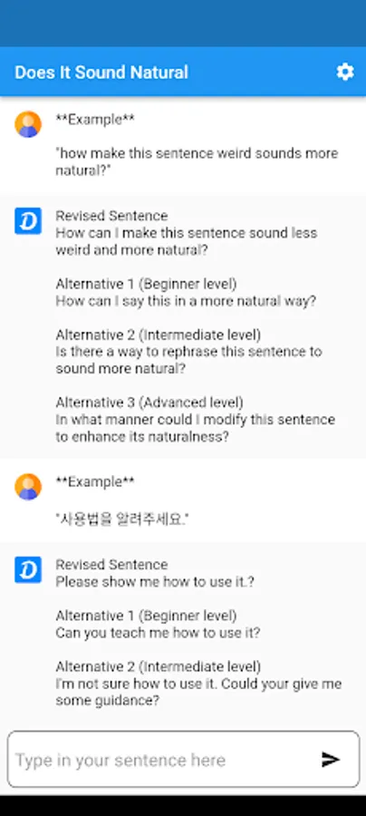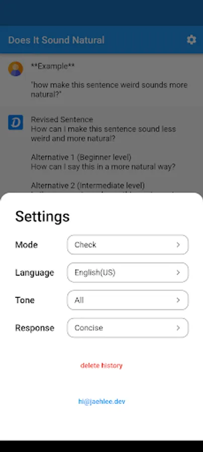 "Does It Sound Natural" checks your sentences for naturalness and clarity, and gives you a feedback, just like a personal tutor :)