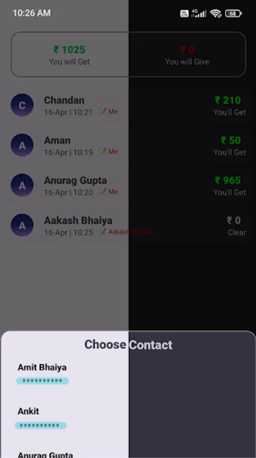 To get started, users create an account for themselves and add their contacts to the app. Users can then add transactions with details like the amount borrowed or lent, the date of the transaction, and any notes they want to include. The app also provides features like reminders and notifications to help users stay on top of their debts.
