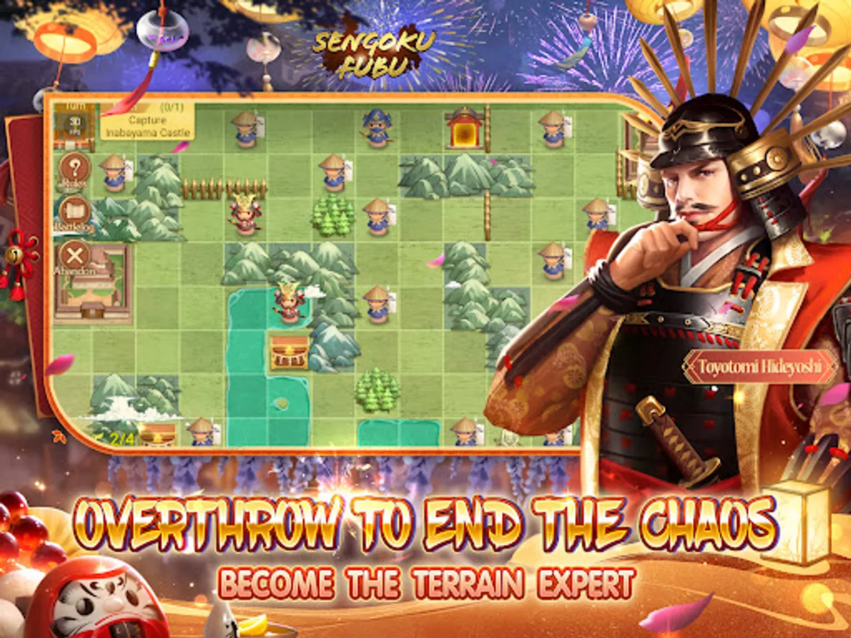 • Become a Lord of Sengoku: develop your terrain to conquer the map and unify the state