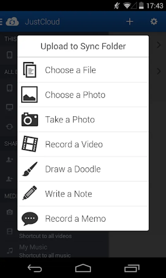 Access all of your files from anywhere using the JustCloud Android application. Listen to your music, watch your videos, open your documents and view your photos all from one easy to use application. But the fun doesn’t stop there, Just Cloud also gives you all of these great features: