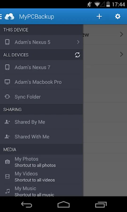 MyPCBackup lets you access your files from anywhere at anytime using your Android device. View your photos, open your documents, listen to your music, sync more files and watch your videos, all over 3G or wireless.