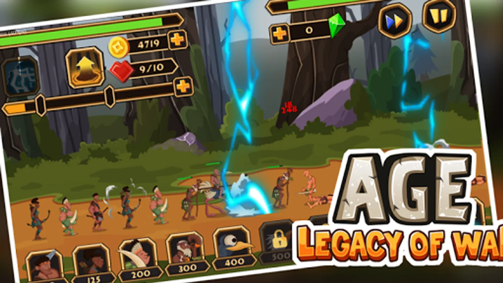 You will have to fight through the feature age from the Stone Age then evolve to Ancient Egypt, Ancient Roman, Present and the Future. For each age you will have a base to train sevent types of soldier. You also have two types of turret to build to protect your base too. Especially, each age has one special skill to attack the enemy.