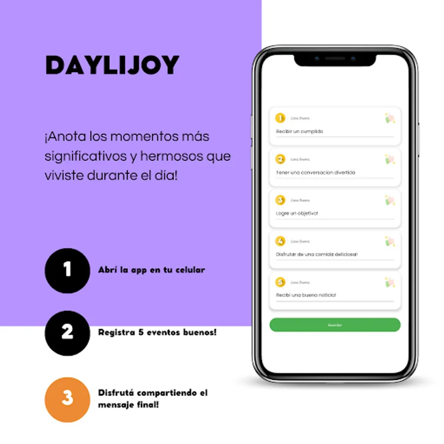 DayliJoy is an app designed to help you focus on the positive and find happiness in everyday moments. Record and save your 5 good things from each day, whether they are small achievements, moments of gratitude or moments of joy. With DayliJoy, you will be able to reflect on the positive things that happen in your life and keep track of them.