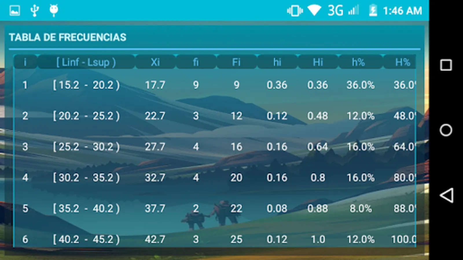 For both cases it also executes the process of making the frequency table for grouped data and frequency table for data grouped in class intervals. Also calculating the amplitude, number of class intervals, amplitude, length of the class interval.