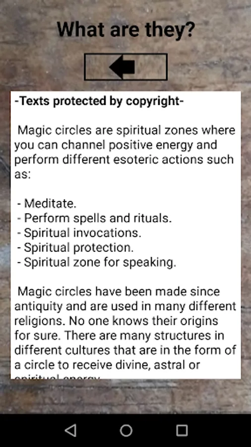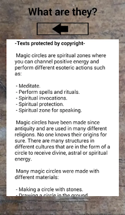 With this application you will discover the magic circles and you can perform 12 rituals of white magic.