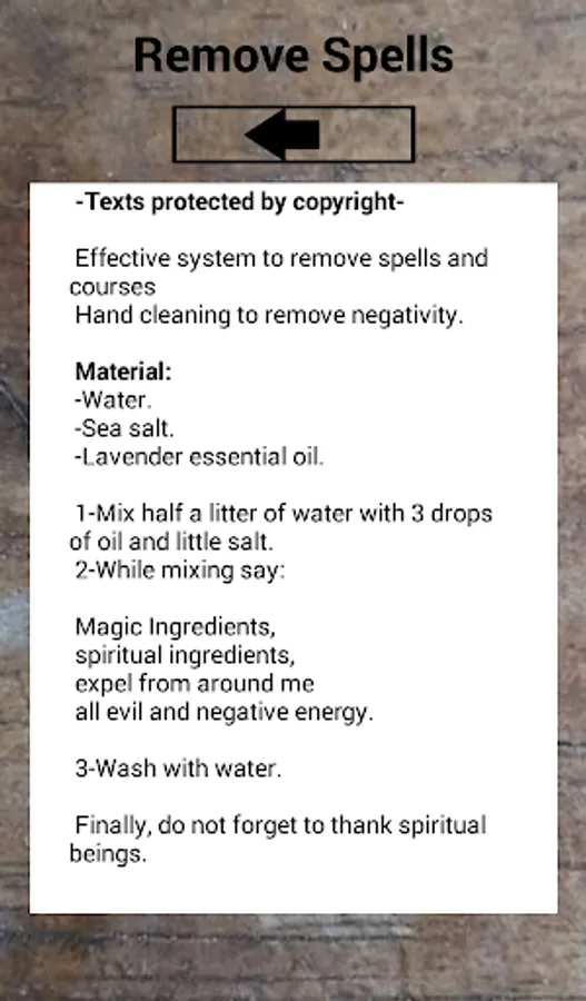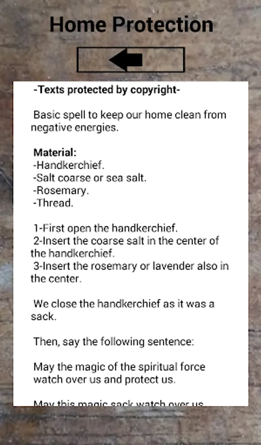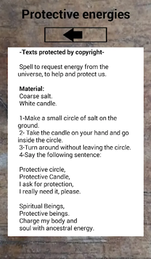 The app's protection spells are white magic and positive energy, some examples are based on Wiccan texts.
