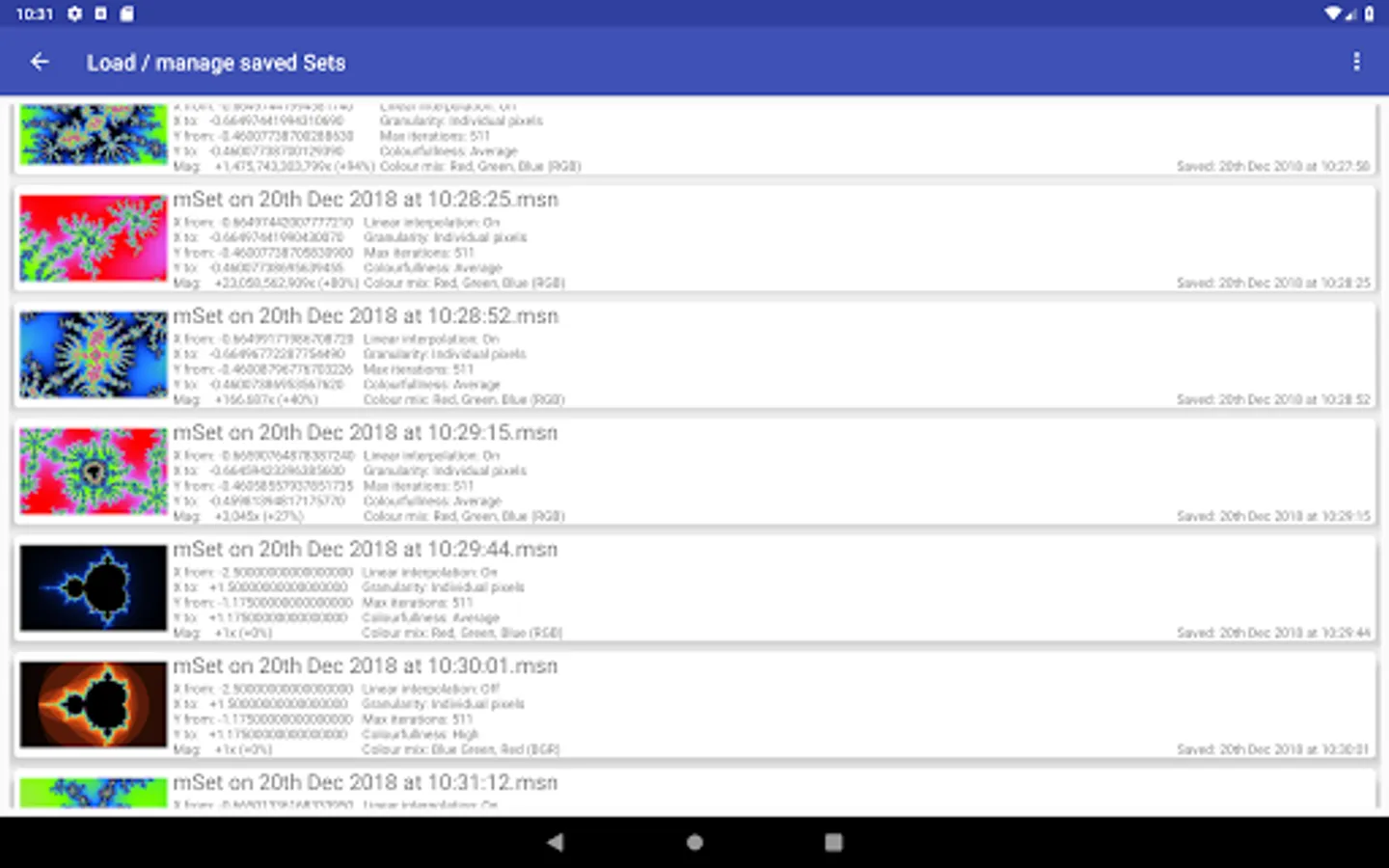 Save your favourite Set coordinates so you can come back to them later and explore further, or save pictures of Sets (PNG or JPEG).